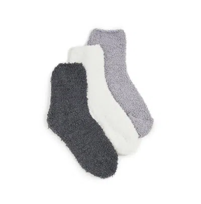 STEMS Plush Ankle Socks 3-pack In Ivory,grey,charcoal