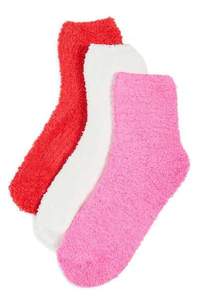 STEMS Plush Cozy Ankle Socks 3-pack In Red,ivory,fuchsia