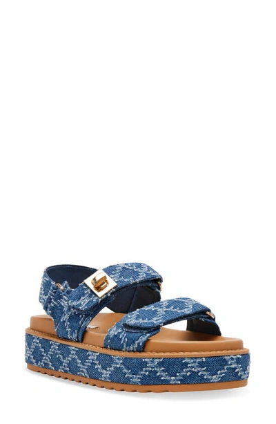 STEVE MADDEN Bigmona Raffia Slingback Platform Sandal In Denim