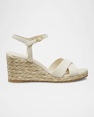 STUART WEITZMAN Dayna Denim Crisscross Wedge Espadrilles In Linen/natural Suede