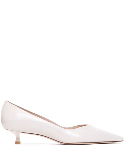 STUART WEITZMAN Eva Leather Kitten-heel Pumps In White