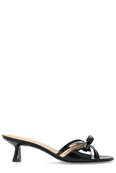 STUART WEITZMAN Felicity Leather Bow Kitten-heel Mules In Black