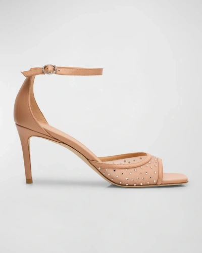 STUART WEITZMAN Nudistia Crystal Mesh Ankle-strap Sandals In Ginger