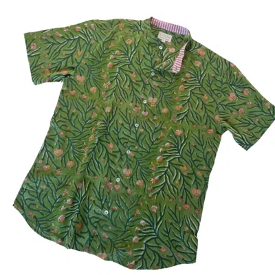 STUDIO KIBUN Men's Poppy Unisex Handblocked Cotton Shirt In Green/orange