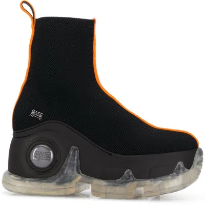 The SWEAR Air Revive collection is a strong throwback to SWEAR Alternative’s archive of iconic 90’s platform boots, now added with contemporary touches — most notably modern uppers and a striking clear outsole. The Air Revive Xtra's gothic-inspired shoe is built around an original stacked wedge that’s true to SWEAR’s history. A neoprene and mesh upper provides a supreme sock-like fit. Your sneakers are custom made and shipped within 5 weeks. Due to the bespoke nature of the service, SWEAR is unable to accept returns or offer refunds. Handmade in Portugal.