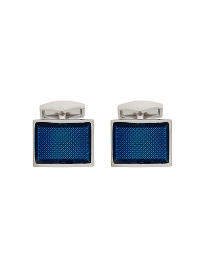Blue and silver-toned rhodium-plated brass, enamel and stone patterned cufflinks from Tateossian.