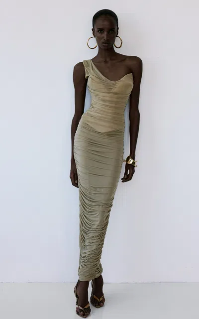The New Arrivals Ilkyaz Ozel - Desirea Sage Single-Sleeve Dress - Green - FR 36 - Only At Moda Operandi