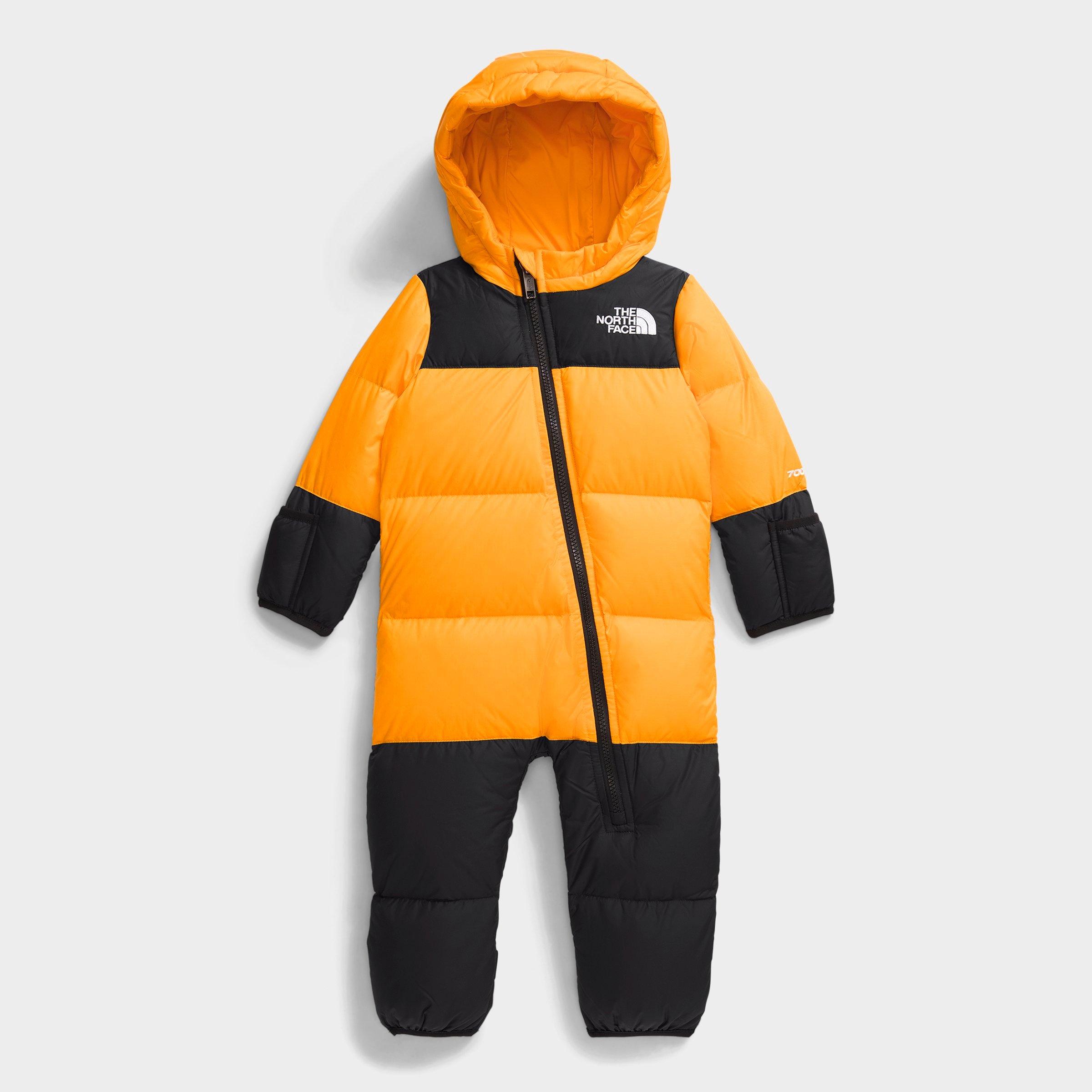 Size & Fit Regular fit for a relaxed feel Made from Sustainable Materials This product is made with around 100% recycled nylon ripstop material Product Features Body made with recycled nylon Lining made with recycled polyester Non-PFC DWR finish repels water 700 fill goose down insulation Attached three-piece hood ID label Asymmetrical VISLON front zip with internal draft flap and chin zip guard Elastic binding on sleeve and leg cuffs Fold-over mitts Oversized logos like the original '96 jacket around 100% recycled nylon ripstop Machine wash The North Face 1996 Retro Nuptse One-Piece is imported. Keep your little one toasty in retro-inspired style with the Infant The North Face 1996 Retro Nuptse One-Piece. This goose down-insulated, water-repellent one piece winter suit takes design cues from the iconic Nuptse jacket so your little one can look cool while staying warm.