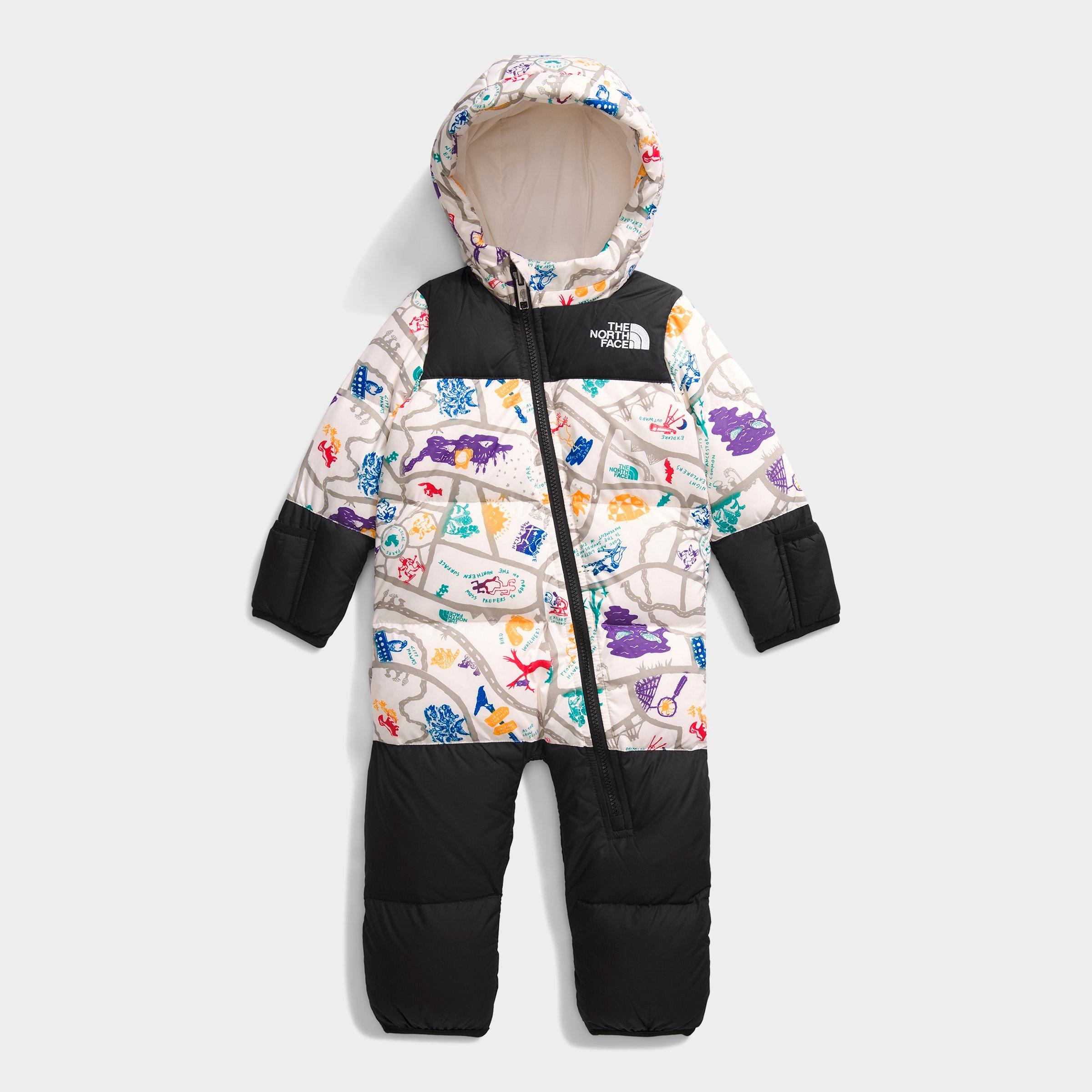 Size & Fit Regular fit for a relaxed feel Made from Sustainable Materials This product is made with around 100% recycled nylon ripstop material Product Features Body made with recycled nylon Lining made with recycled polyester Non-PFC DWR finish repels water 700 fill goose down insulation Attached three-piece hood ID label Asymmetrical VISLON front zip with internal draft flap and chin zip guard Elastic binding on sleeve and leg cuffs Fold-over mitts Oversized logos like the original '96 jacket around 100% recycled nylon ripstop Machine wash The North Face 1996 Retro Nuptse One-Piece is imported. Keep your little one toasty in retro-inspired style with the Infant The North Face 1996 Retro Nuptse One-Piece. This goose down-insulated, water-repellent one piece winter suit takes design cues from the iconic Nuptse jacket so your little one can look cool while staying warm.
