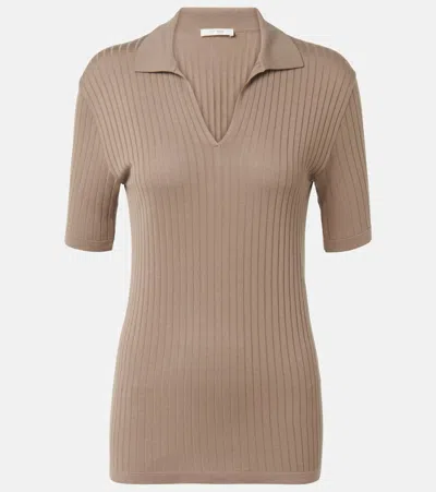 THE ROW Kaiomi Polo Top In Silk And Viscose In Brown