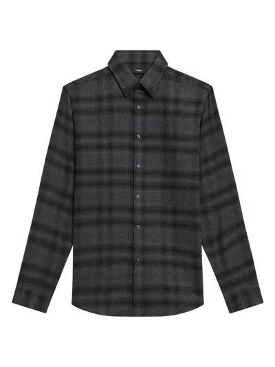 THEORY Irving Plaid Cotton Flannel Button-up Shirt In Hunter Green Melange