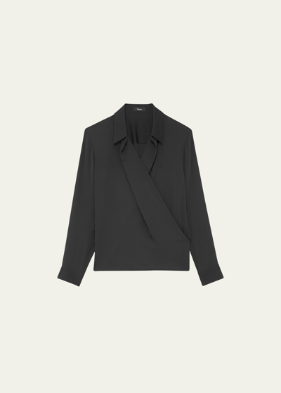THEORY Modern Silk Georgette Wrap Blouse In Black