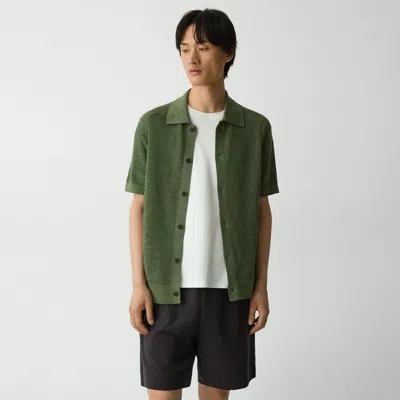 THEORY Short-sleeve Button-up Shirt In Pacific Linen In Green