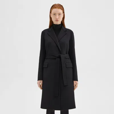 THEORY Wrap Coat In Double-face Wool-cashmere In Black