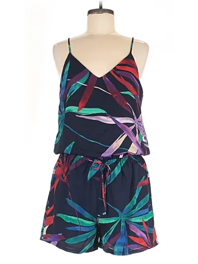 Three Eighty Two Romper, Size: Medium. Item Details: Blue, Tropical Pattern, Halter Neckline, Skinny Leg, Sleeveless, Print, Women's Dresses, 100% Polyester