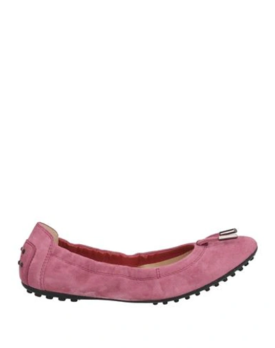 TOD'S Woman Ballet Flats Mauve Size 7 Leather In Purple