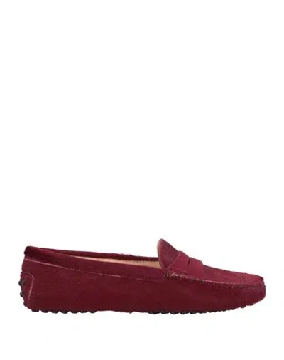 TOD'S Woman Loafers Burgundy Size 7.5 Calfskin In Red