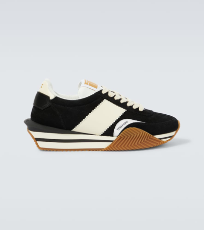 TOM FORD James Panelled Flatform Sneakers In Black Cream