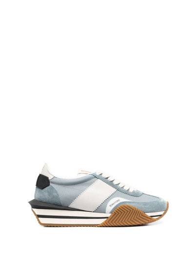 TOM FORD "James" sneakers in suede with leather trim. Rubber guard extends to side and back of midsole. Platform heel Reinforced round toe. Lace-up vamp. Logo at tongue, side, and backstay. Cushioned footbed. Rubber sole. Made in Italy.