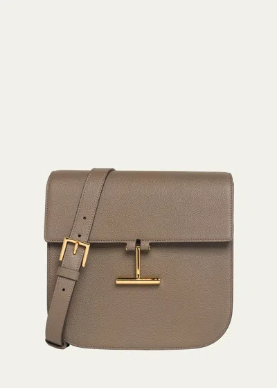 TOM FORD Tara Medium Crossbody In Grained Leather With Leather Strap In Greige