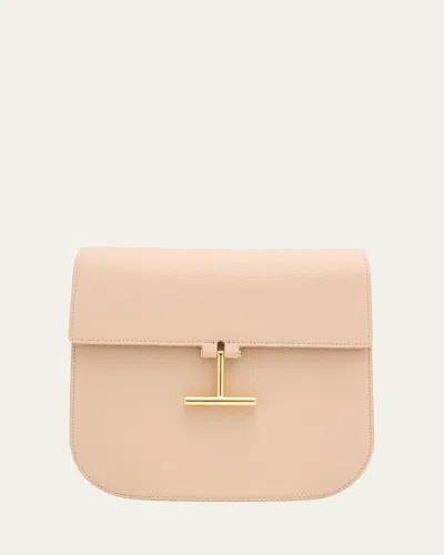 TOM FORD Tara Medium Crossbody In Grained Leather With Leather Strap In Light Beige