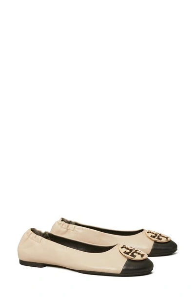TORY BURCH Claire Cap Toe Ballet Flat In Black / New Cream
