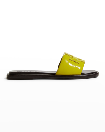 TORY BURCH Double T Logo Flat Slide Sandals In Lime/ Lime/ Lime/ John Coco
