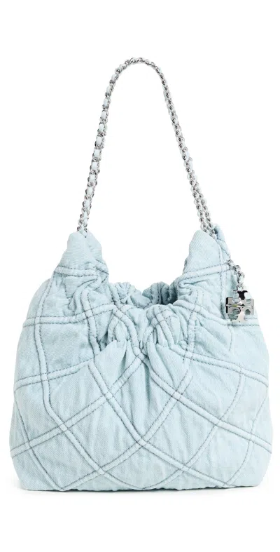 TORY BURCH Fleming Mini Quilted Denim Hobo Bag In Seltzer