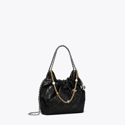 TORY BURCH Mini Fleming Soft Distressed Hobo Bag In Black