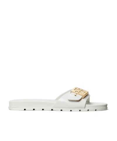 TORY BURCH Patent Synthetic Leather Buckle Slide In White