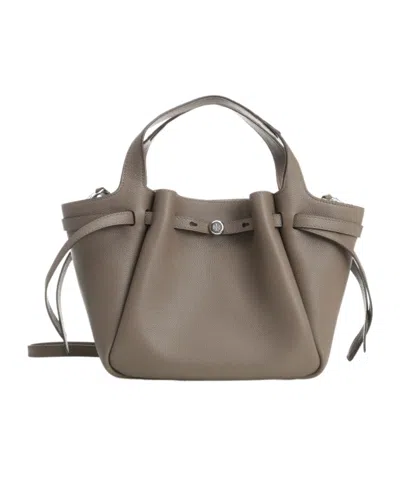 An adjustable drawstring strap and signature logo hardware create visual intrigue and functionality on a spacious satchel rendered in richly pebbled leather. Magnetic-snap closure; adjustable drawstring with button closure Top carry handles; adjustable crossbody strap Interior zip pocket Flat base for stability Lined Leather Imported