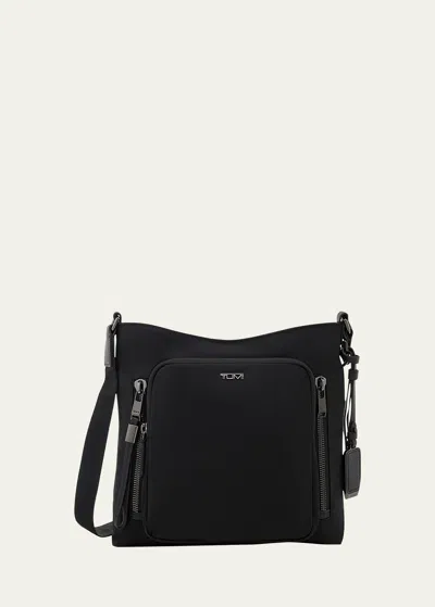 With ample pockets and organizational features, this compact, hands-free bag combines sleek style and functional design, making it a perfect choice for travel and every day. Crafted of nylon/polyamide, leather, and polyester Approx. 10"W x 1.8"D x 10.3"T Lining: Polyester Trim: Leather Imported Exterior: Adjustable crossbody strap Zip entry to main compartment Front zip pockets Back pocket; magnetic snap closure Interior: Zip, media, and open pockets Card pock...