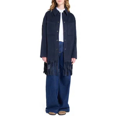 TWP Midnight Cowboy Fringed Suede-trimmed Cashmere Jacket In Blue