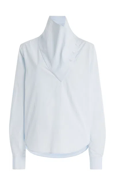 Like a best-kept secret among the fashion savvy; TWP has spread only by word of mouth. “It’s the insider resource for wardrobing: tailored pants and shirting from Italian fabrics at unbeatable price points. The type of brand you’ll be so pleased you discovered—and your friends will thank you too; says LSD. Blouse with a bandana inspired funnel neck crafted in a crisp cotton poplin. Can be worn with collar unbuttoned as well.