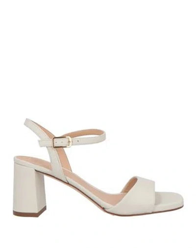 ankle strap sandals, leather, solid color, no appliqués, leather lining, buckle-fastening ankle strap, square toe, square heel, leather sole, contains non-textile parts of animal origin , Color: Off white , Size: 8
