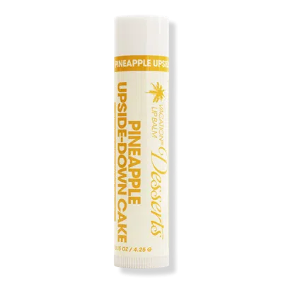 LIP BALM SPF 30 PINEAPLE UPSIDEDOWN CAKE. Benefits: Broad spectrum SPF 30. Water-resistant (80 minutes). PEG & paraben-free. A firm, warm-weather-friendly stick with a smooth, luxurious glide. Clean feeling with a subtle sheen. Truly transparent application. Hydrating and nourishing. Packaging made with recycled materials. Every Vacation formula is dermatologist tested and reviewed by toxicologists to ensure world-class protection. Key Ingredients: Coconut Oil, Jojoba Oil, & Olive Oil - Rich, emollient oils to keep lips feeling soft and smooth before, during, and after sun exposure. Candelilla & Sunflower Wax - A beeswax-replacing combination of waxes that help to provide a glossy shine. Aloe Vera - A naturally occurring cocktail of antioxidants that soothe and hydrate sun-kissed skin. Cocoa Butter - A delightful butter that strengthens the protective barrier and helps lips retain moisture. Vitamin E - A vitamin renowned for its ability to replenish sun-exposed skin. Formulated Without: Oxybenzone. Octinoxate. Parabens. Phthalates. PEGs. Beeswax. Mineral Oil.