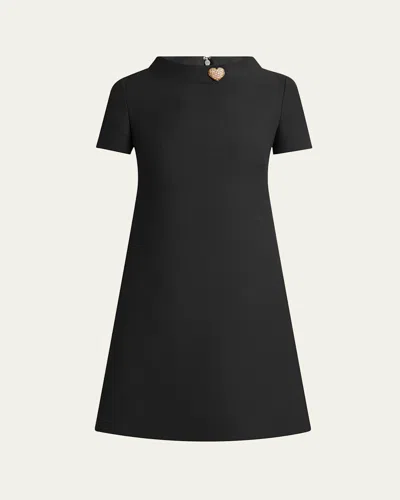 VALENTINO Crepe Couture Crystal Heart Mini Dress In Black