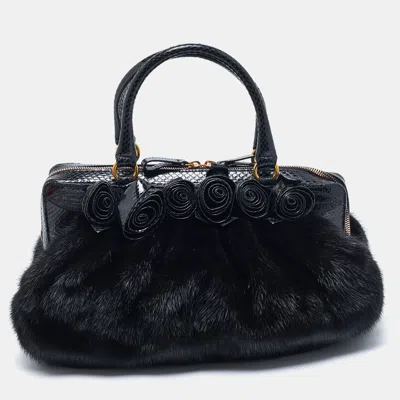 Pre-owned Black Snakeskin And Fur Frame Satchel