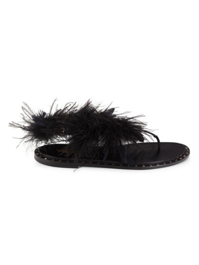 VALENTINO GARAVANI Women's Feather Thong Flats In Nero