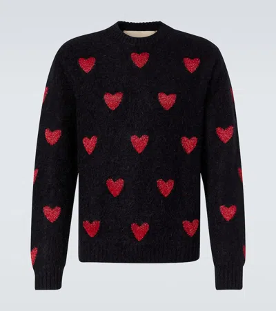 VALENTINO Heart Jacquard Mohair And Lurex Jumper In Black