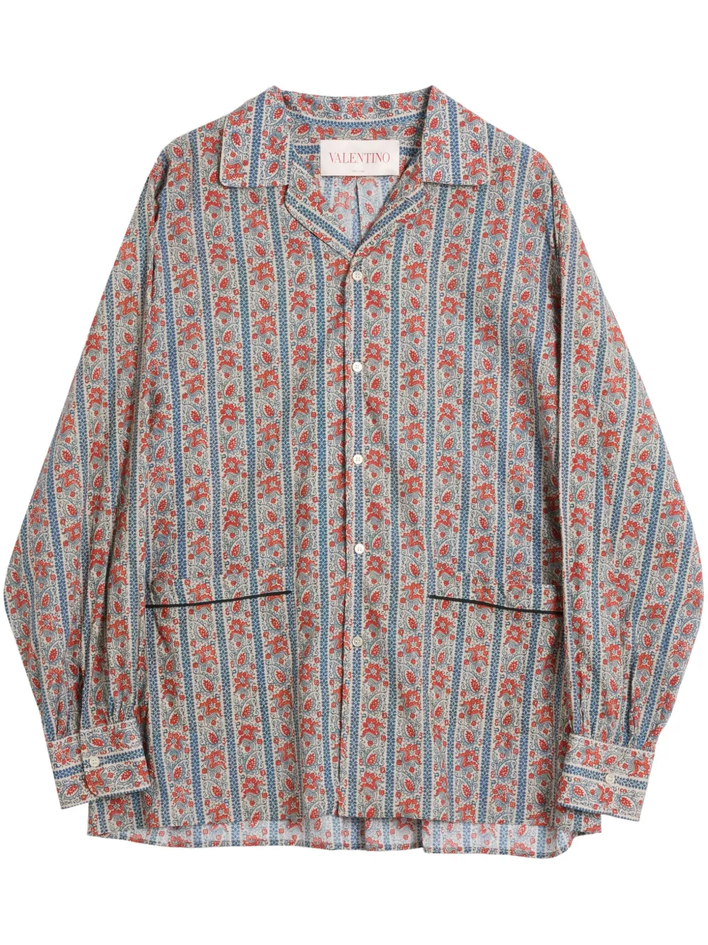 Valentino garavanis cotton shirt features classic lapels and a front button closure for a sleek, understated look. two patch welt pockets on the front add practicality, while adjustable button cuffs offer a customizable fit. the multicolored, all-over repeated paisley pattern lends a distinctive and vibrant touch, making this shirt a sophisticated and on-trend piece. Composition: 100% % Cotton