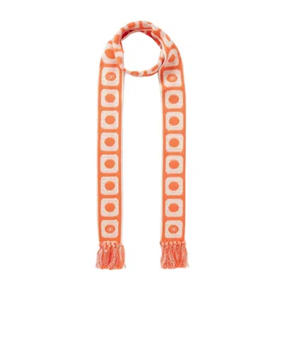 VALENTINO Antibes Fringed Cotton-blend Jacquard Scarf In Orange