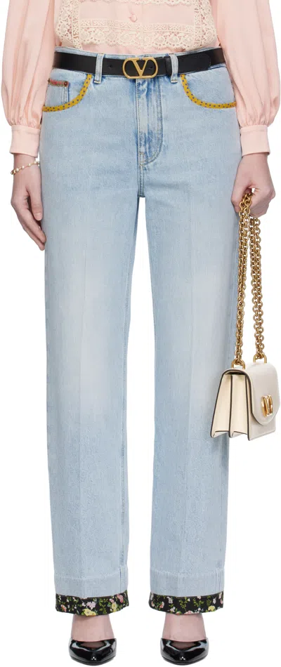 VALENTINO Stitched Denim Trousers With Embroidered Accents In Blue