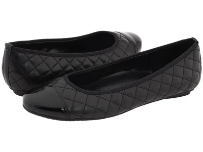 Vaneli Serene - Women's Flat Shoes : Black Nappa/Black Patent : Quilted leather skimmer flat with matching rolled elastic topline and contrasting leather or coordinating patent leather cap toe. Softly padded insole and arch support. One-piece flexible rubber sole and flat heel. ; Suede or nappa upper. ; Combination leather and textile lining helps to wick away unhealthy moisture. ; Slip-on style. ; Durable rubber outsole and slight heel provide flexibility with each step. ; Imported. Measurements: ; Heel Height: 3 8 in ; Weight: 6 oz ; Product measurements were taken using size 7, width M (B). Please note that measurements may vary by size. | Vaneli Serene Women's Flat Shoes Black Nappa/Black Patent : 6 W (C), Leather/Patent Leather