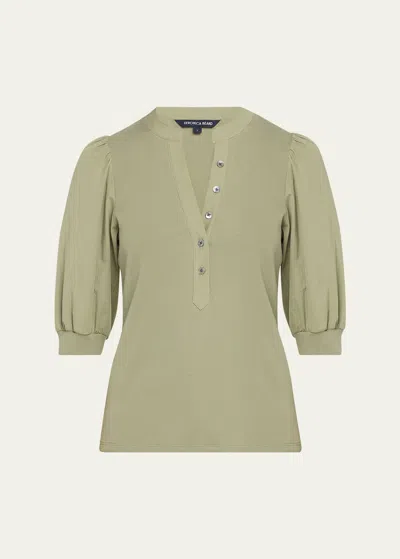 VERONICA BEARD Coralee Puff Sleeve Button-front Top In Stone Army