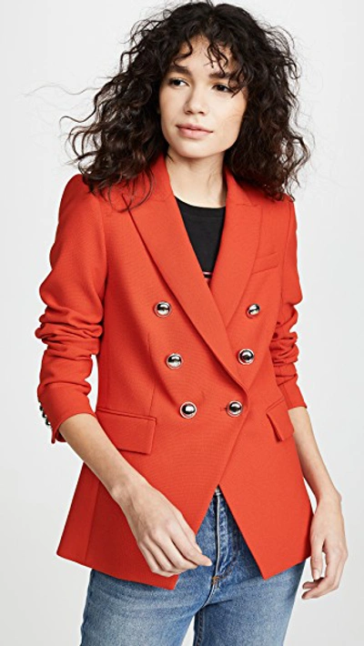 Fabric: Suiting Solid-color design Mid-length profile Long sleeves Button at front Faux breast pocket Flap front pockets Lined Shell: 69% polyester/28% viscose/3% elastane Lining: 100% polyester Dry clean Made in the USA of imported materials Measurements Measurements from size 8 Length: 26in / 66cm, from shoulder