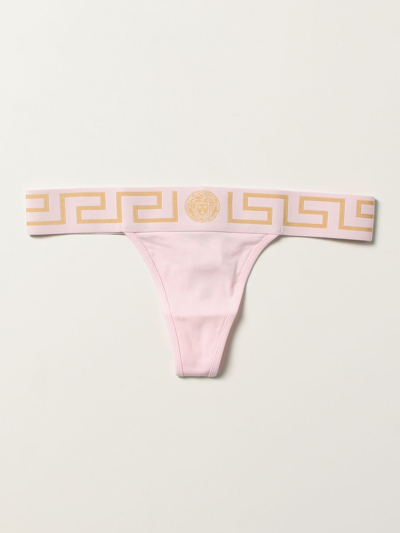 VERSACE Greca Cotton Thong In Baby Pink