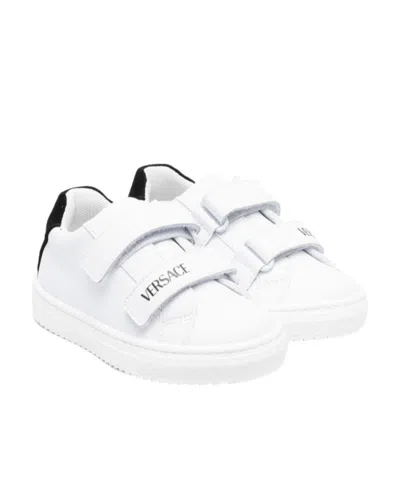 VERSACE Kids' Logo-print Touch-strap Sneakers In White