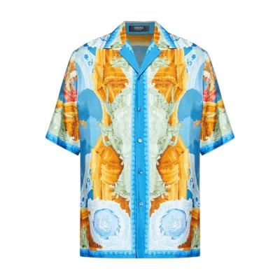 light blue/multicolour silk Gallery print short sleeves button fastening camp collar straight hem . Colour. : Blue. Composition. : Outer Composition Silk: 100.0%. Country Of Manufacture. : Italy. MPN. : 1A1609510039265X000. Size Family. : IT. .