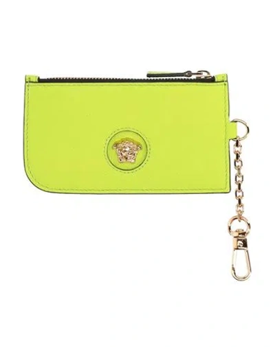 VERSACE Woman Cardholder Lime Green Size - Leather In Purple